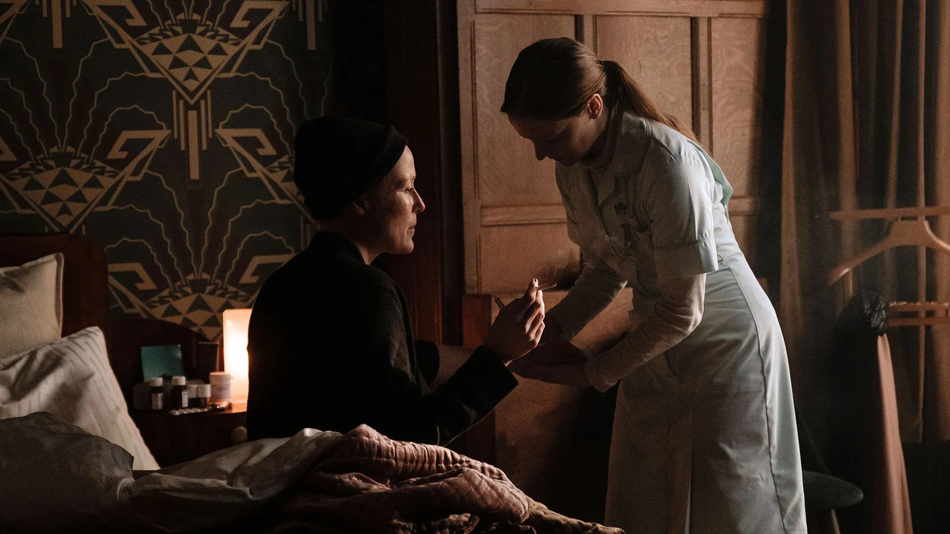 Pour commencer Saint Maud propose un postulat que je trouve très pertinent, à savoir suivre la vie d’une femme certes tourmentée mais animée par une foi puissante, tel est le reflet de la scène d’ouverture qui annonce les enjeux que nous serons amenés à revoir durant tout le long de l’œuvre de Glass. Pour son premier film, la réalisatrice nous livre une véritable œuvre cinématographique riche en symbolisme et en métaphores, car oui lorsque l’on veut s’attaquer à un sujet aussi complexe que la religion dans son rapport avec la société et les personnes qui nous entourent, il faut rivaliser d’idées afin d’amener l’horreur qu’on attend. Et c’est là que le film se montre assez surprenant, l’horreur n’est pas réellement la clé de ce film tant elle est distillée dans les symboles de la foi. Parmi ces symboles on trouve Maud qui va mettre son existence entre les mains de Dieu quitte à se mutiler, se priver de nourriture, ou à prier de manière intense tout en se blessant volontairement.