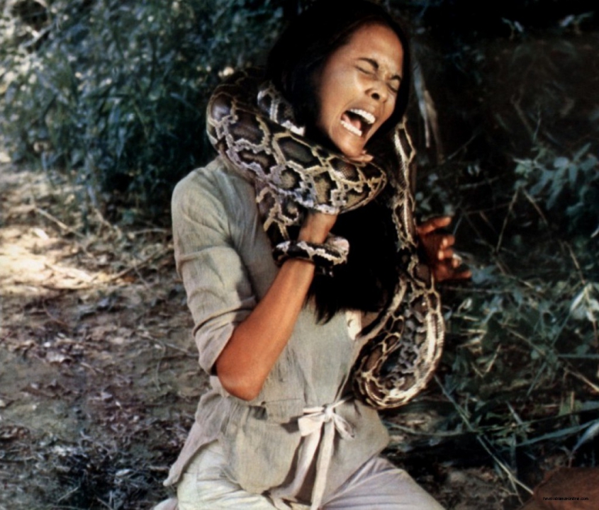 Réalisé en 1977, Emanuelle et les derniers cannibales (Emanuelle e gli ultimi cannibali) est l’avant-dernier film de la saga de Joe d’Amato et de la fameuse journaliste libre et libérée et force est de constater qu’indéniablement, elle l’est. Nous reviendrons très certainement un jour sur cette série de métrages, ce qui serait l’occasion de développer ce personnage. Mais nous pouvons dire, dans les grandes lignes, qu’Emanuelle (La sublime Laura Gemser) sait ce qu’elle veut et usera de ses charmes et de son intelligence pour se sortir de beaucoup de situations en les tournant à son avantage. En somme, une femme forte qui n’aura pas attendu l’aune des années 20’s pour montrer que la gente féminine peut en répondre à la masculinité et ce, ô miracle, sans forcer certaines caractéristiques qui en deviennent parfois de nos jours de véritables clichés et qui, au lieu d’appuyer des propos, les desservent. Mais ceci est une autre histoire…