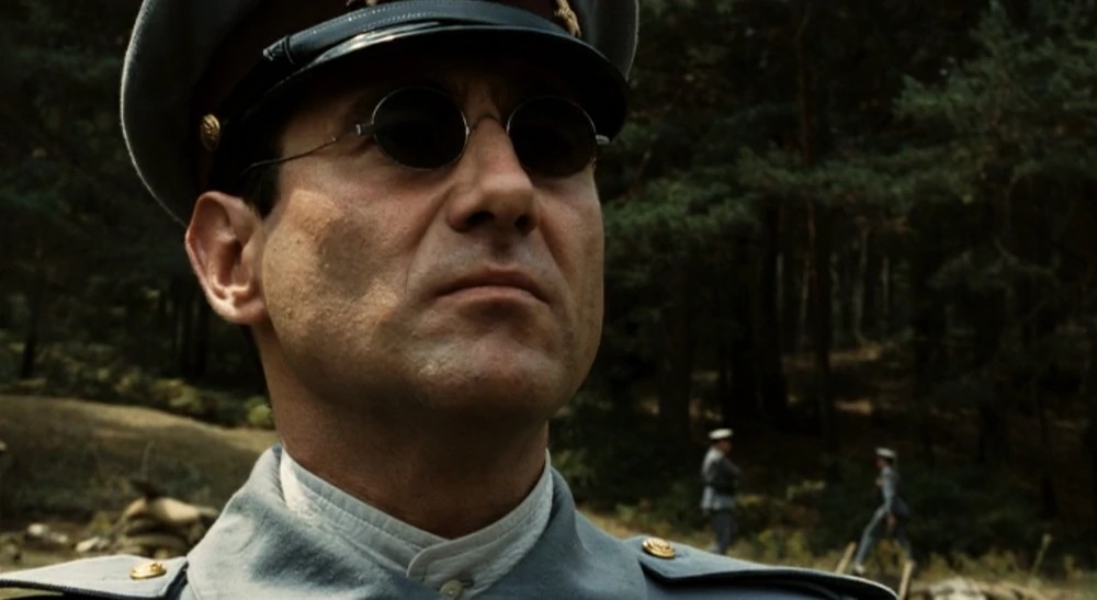 Vidal (qui signifie la vie) est la représentation du patriarcat, obsédé dans la répétition de l’Histoire (mouvement de caméra rotatif vers la gauche par deux fois, figure de son père omniprésente, etc.) et donc une transcription de la négation de la vie, le sur place, à la fois porteur et victime de la représentation du temps via la montre de son père, objet hautement symbolique pour son personnage mais aussi pour Del Toro. Vidal est la personnification du patriarcat, associé à des formes droites (rectitude) toujours placées dans des ouvertures de porte, ce protagoniste masculin est régulièrement filmé en contre-plongée pour montrer sa dominance. Personnage misogyne qui n’hésite pas à humilier sa femme enceinte en l’obligeant à se déplacer en chaise roulante, il va couper Ofelia du lien avec sa mère (à l’écran et par coupure de caméra). Vidal, comme le fascisme, est lié à la vision de la mort. Le capitaine Vidal sera le monstre de cette histoire et incarnera toutes les valeurs patriarcales.