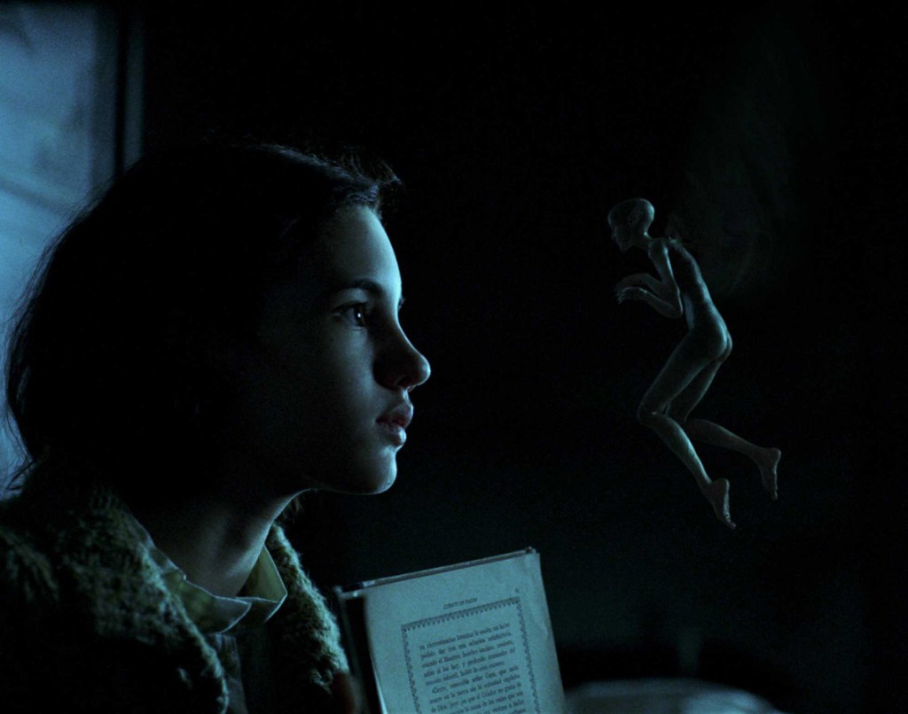 Le Labyrinthe de Pan présente deux histoires simultanées, dès la scène d’introduction un univers ténébreux faisant penser à une illustration de la Divine comédie – Enfer de Gustave Doré dans laquelle une voix off nous parle d’une princesse qui vivait il y a très longtemps dans un royaume souterrain et nous lisons « Cachés dans les montagnes, des groupes armés continuent à combattre le régime fasciste. Ce dernier lutte pour les étouffer ». Nous pouvons y voir deux niveaux superposés : celui, réaliste, la violence de l’Histoire et celui, fantastique, la quête initiatique d’Ofelia. Les deux univers sont mis en parallèle tout au long du film et se répondent sans cesse : le réel et l’imaginaire se côtoient sur un même plan tout au long du film, donnant l’impression lorsque le glissement est horizontal de tourner les pages d’un livre. Les stratégies sonores et visuelles structurent les séquences. Le lien qui assure ces passages est le personnage de la petite fille, Ofelia, qui est à la jonction des deux univers : elle doit subir la tyrannie de son beau-père et elle est l’héroïne du conte.