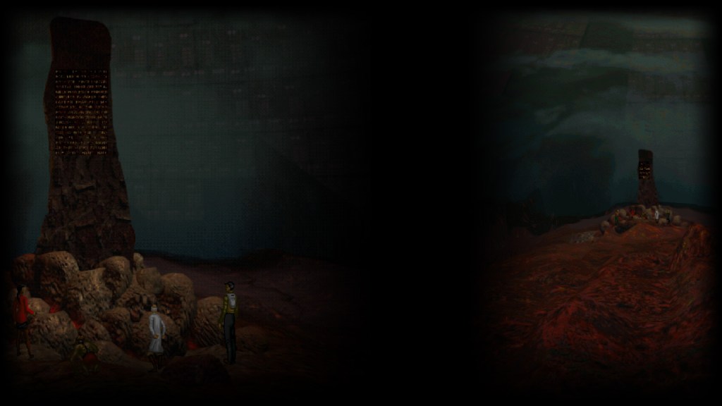 Dès ses origines issues d’une nouvelle dystopique (Harlan Ellison, 1967) qui a obtenu le prix Hugo de la meilleure nouvelle courte de 1968, l’univers de I Have No Mouth, and I Must Scream est totalement horrifique. Inventée et écrite pendant une unique nuit un an plus tôt, c’est Cyberdreams qui l’éditera 29 ans plus tard en jeu vidéo après son écriture originelle. Le récit nous jette dans une ambiance cyberpunk avec la dictature d’A.M, un « super ordinateur » ayant détruit le monde. Le gameplay induit le contrôle de cinq personnages (Benny, Ellen, Gorrister, Ted et Nimdok) à tour de rôle. Ces protagonistes au passé compliqué se retrouvent emprisonné·e·s dans la réalité virtuelle d’A.M. Affamé·e·s et terrorisé·e·s par cette intelligence artificielle, iels se décident à trouver de quoi se nourrir et pourquoi pas réussir à s’échapper de cette prison. Le jeu est accompagné d’une narration de Ted qui décrit la cruauté et le manque d’empathie de leur tortionnaire. Au fil de leurs aventures, le groupe se retrouve dans des pièces mystérieuses aux décors étranges, parfois surréalistes, effrayants et dérangeants. Entre grotte de glace et salle de torture, les pièges de l’entité cybernétique ne cessent de s’enchainer. Durant leur tentative pour survivre, les toiles de fond oscillent entre scènes religieuses, atmosphères glauques et cadres de science-fiction pour plonger son public dans un cauchemar éveillé qui frôle le body horror en offrant des hurlements en perspective !