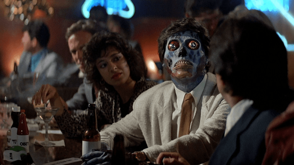 Cet unboxing s’inspire de la patte graphique de John Carpenter, et en particulier du film They Live aka Invasion Los Angeles, un métrage de science-fiction sorti en 1988 qui nous présente les péripéties d’un homme, John Nada, découvrant que ses nouvelles lunettes de soleil ont l’étrange capacité de lui dévoiler une terrible vérité : les extraterrestres sont partout et ils ont prévu d’envahir secrètement la planète !