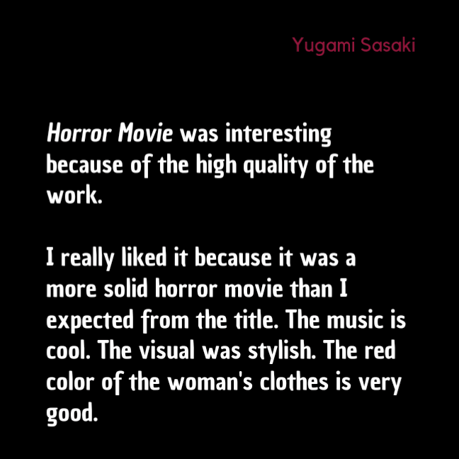 Récemment présenté à la première édition du East Koenji Film Festival, Horror Movie a été reçu positivement auprès d’un public nippon friand de cinéma de genre !