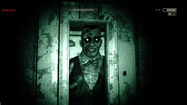 Arrivé à l’asile, Miles découvrira un bâtiment arpenté par des patients aussi fous que meurtriers et tentera d’informer sur la situation grâce à la seule arme qu’il possède, sa caméra. Dans Outlast, vous n’avez aucun moyen de vous défendre, filmer et courir serons les actions que vous ferez le plus souvent. La caméra, permettant d’illuminer des zones sombres (qui utilise encore des lampes torches ?) et la course, vous évitant une mort certaine dans les bras d’un des nombreux patients de l’asile.