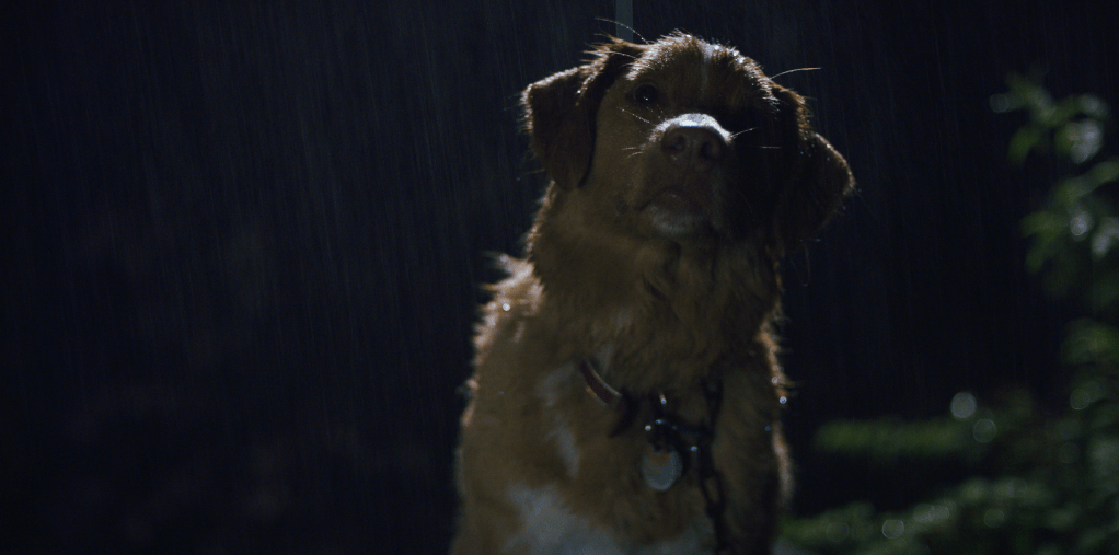 Ce parti-pris général permet donc l’exploitation narrative de cadrages nouveaux, où la contre-plongée est reine, où les axes de plans sont au ras du sol, où les suivis du chien au steadicam, le long des couloirs et escaliers, permettent quelques jump scares bien sentis. Mais aussi l’exploitation – nouvelle – d’attitudes canines inédites.