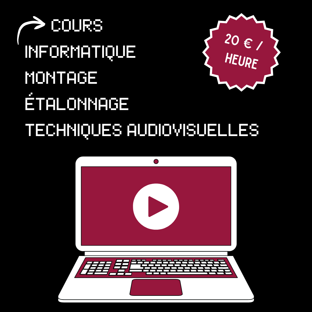 En plus de ses activités associatives, Three Mothers Films collabore avec des indépendant·e·s spécialisé·e·s dans les services audiovisuels. Three Mothers Films & Co. offre un catalogue de cours au montage, à l’étalonnage, la numérisation de bobines, l’impression sur textiles (flex), la captation et d’autres trucs plutôt pratiques !